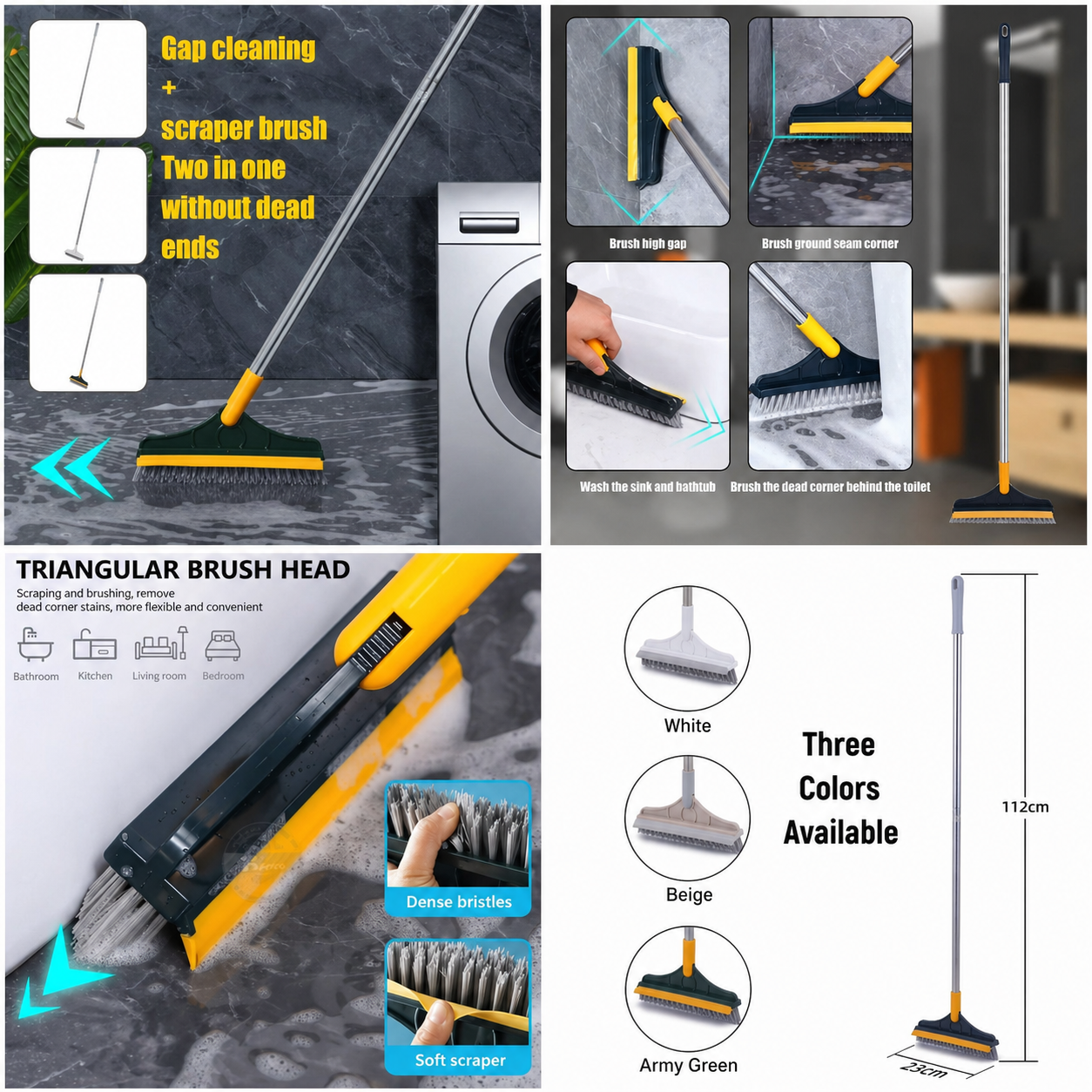 Its long handle makes it ideal for cleaning bathrooms, kitchens, living rooms, and bedrooms — tackling sinks, bathtubs, tiles, and even behind toilets. The dense bristles scrub away dirt, while the scraper removes stubborn stains, giving spotless results without dead ends.