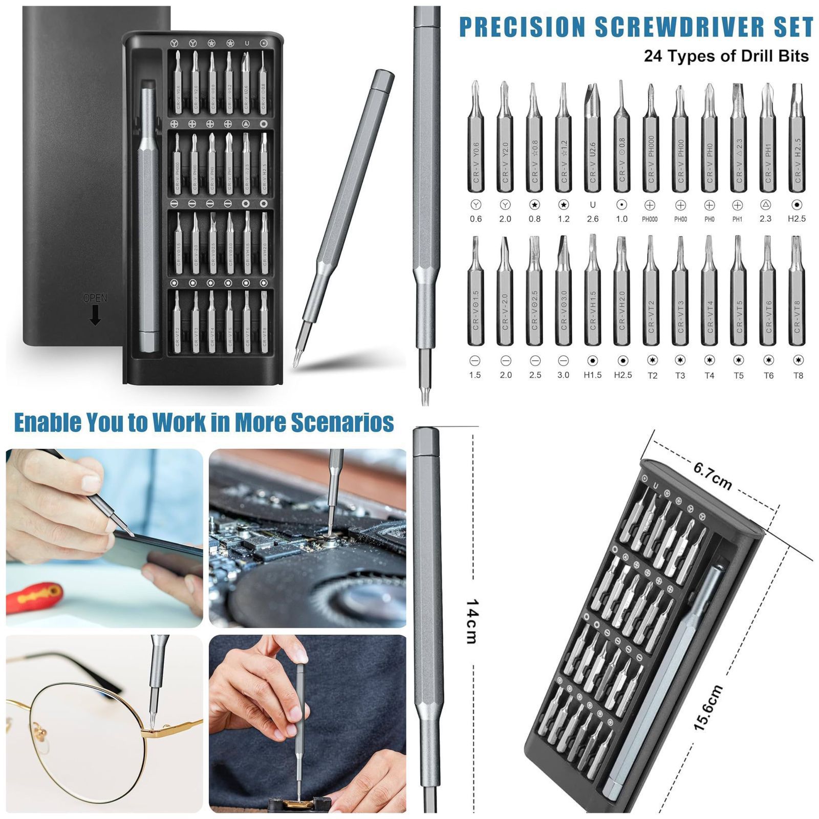 - Set Includes: 24 types of precision drill bits