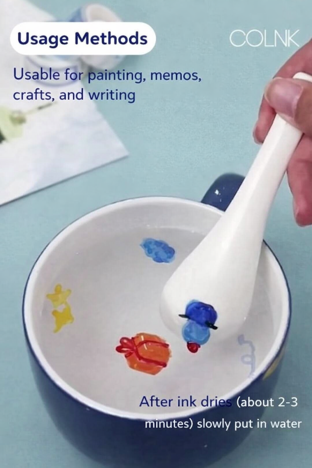 - Function: Draw on surfaces, watch designs float on water