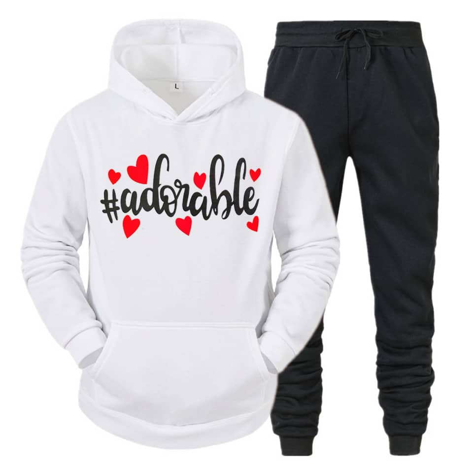 Modern Design: The sleek, modern silhouette fits perfectly, providing a flattering and trendy look. The hoodie comes with an adjustable drawstring for added style and function, while the matching track pants feature an elastic waistband for a comfortable, customizable fit.