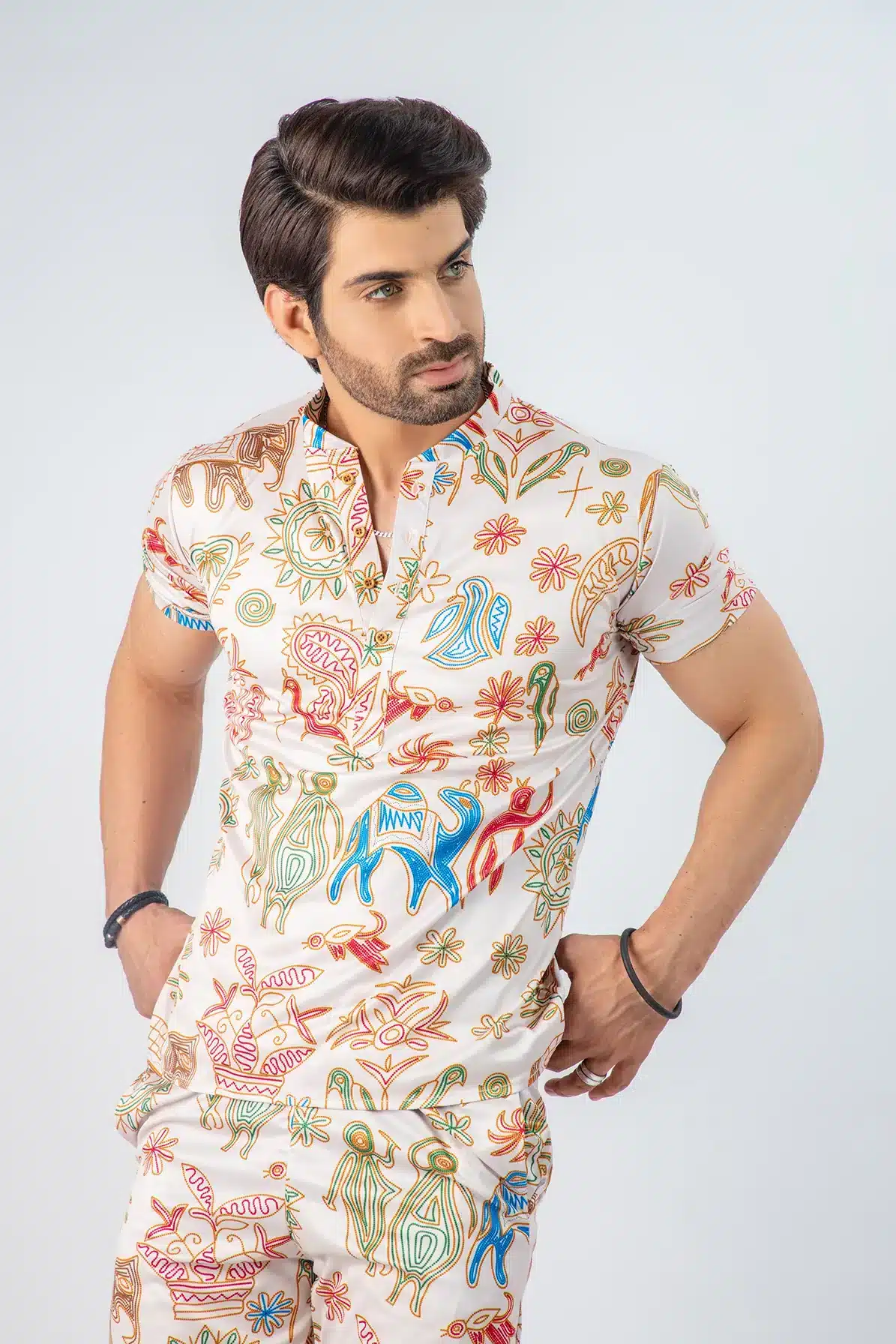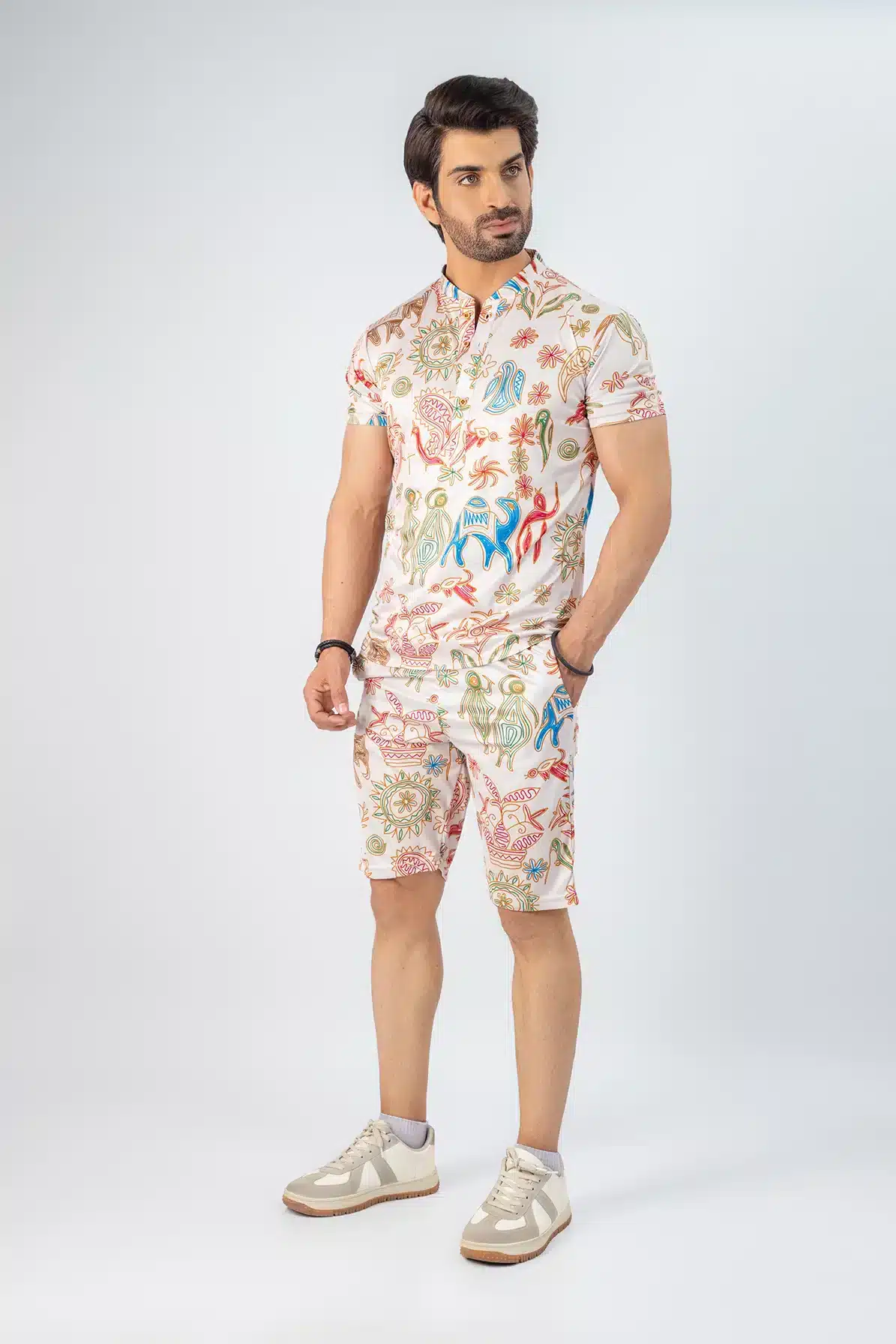 Dive into vibrant summer vibes with our mens tropical floral print casual summer short suit. Crafted from lightweight synthetic fabric, this regular-fit outfit offers cool and comfort all day. Whether you’re exploring the beach, enjoying a sunny vacation, or relaxing with friends, this tropical floral print summer short suit for men is your perfect pick. Upgrade your summer style—grab yours now and shine under the sun!.