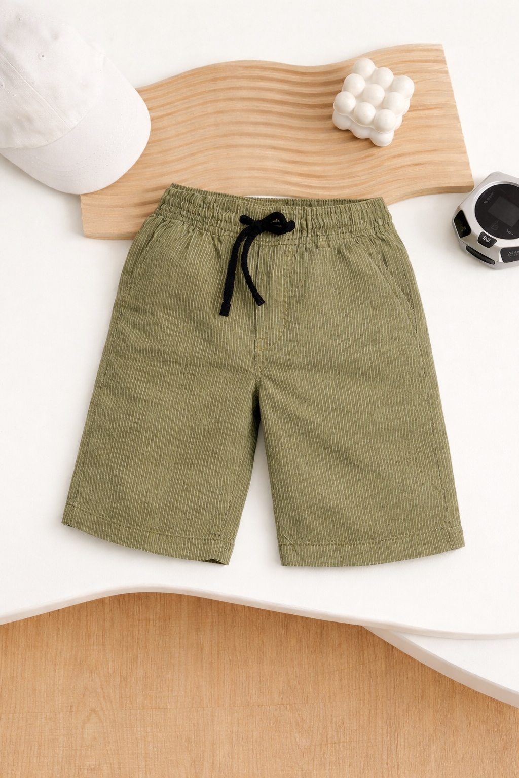 Be the first to review “Army Green Drawstring Pinstripe Summer Short for Kids”
