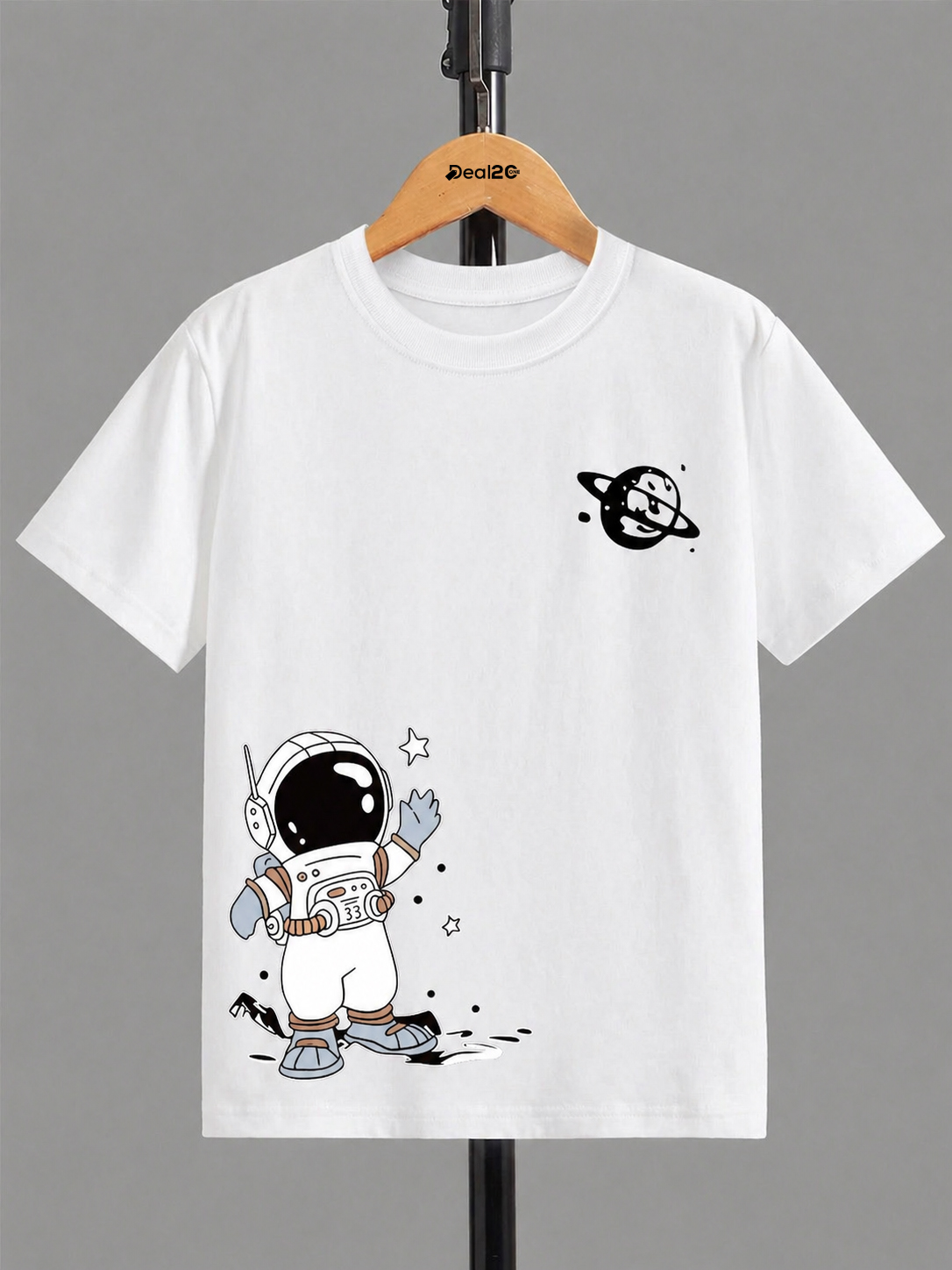 Featuring a white color with a fun Astro Planet print, this t-shirt adds energy and excitement to your child’s outfit. Whether it’s a casual outing, school day, playtime, or relaxing at home — this tee fits right in without trying too hard.