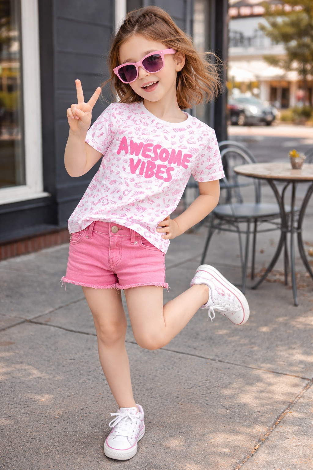 Upgrade your wardrobe with our exceptional Awesome Vibes Printed T-shirt for Girls today and experience the perfect fusion of fashion and functionality. Stay stylish.