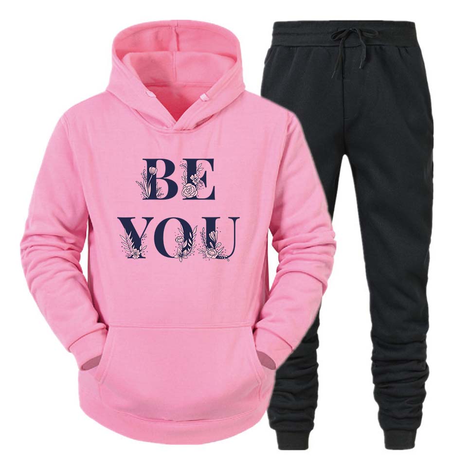 Modern Design: The sleek, modern silhouette fits perfectly, providing a flattering and trendy look. The hoodie comes with an adjustable drawstring for added style and function, while the matching track pants feature an elastic waistband for a comfortable, customizable fit.