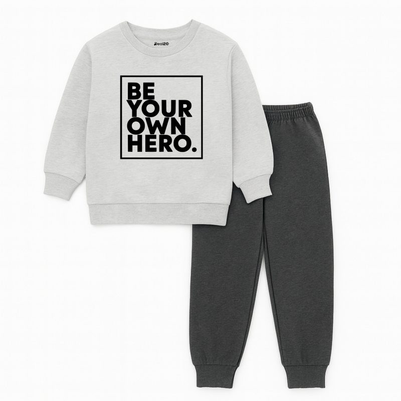 Upgrade your tween boy’s wardrobe with the Be Your Own Hero Contrast Sweatshirt Tracksuit for Tween Kids. Featuring bold car-inspired graphics on a sleek Heather Grey, CHarcoal cotton fleece base, this tracksuit is perfect for kids who love sporty style. Whether it’s school, outdoor play, or casual hangouts, this outfit ensures comfort, warmth, and trendy vibes all winter long.