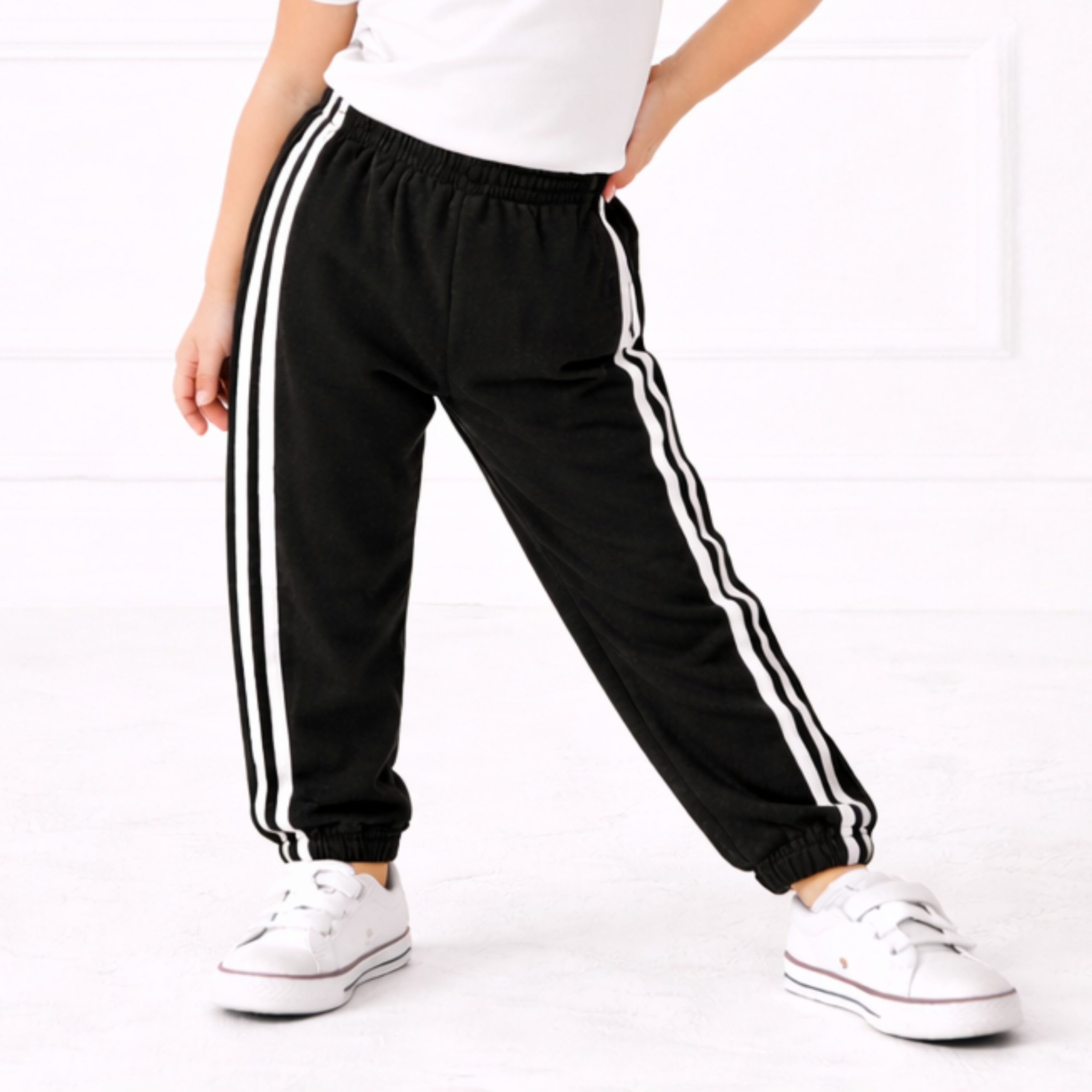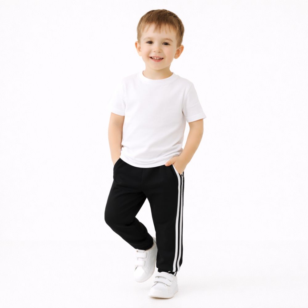 Give your little girl the perfect mix of comfort and style with our Black Double Stripe Sweatpant for Unisex. Crafted from soft, breathable, and stretchable fabric, these sweatpants are ideal for school, sports, casual outings, or simply lounging at home.