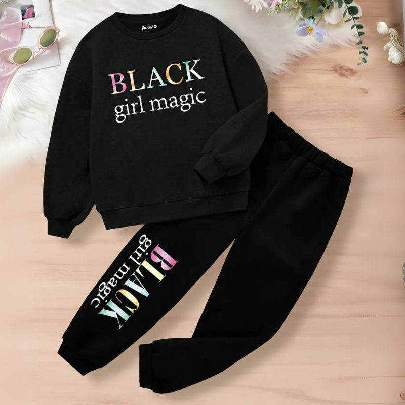 ✅ Black Girl Magic Printed Sweatshirt Tracksuit for Girls