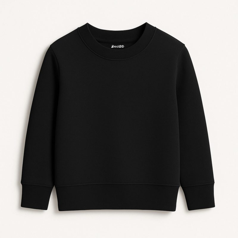 ✅ Black Plain Sweatshirt for Kids – Unisex