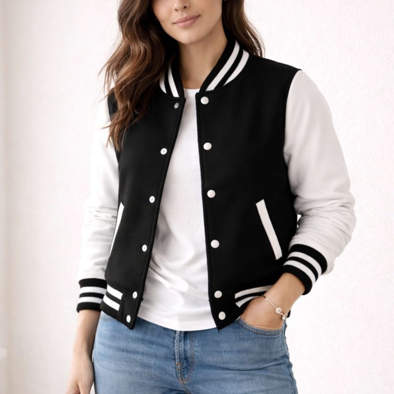 Introducing our iconic Black Varsity Jacket for Women, a timeless and versatile wardrobe staple that effortlessly combines sporty style with classic charm. Crafted with meticulous attention to detail, this jacket pays homage to the traditional varsity look while offering modern comfort and durability. Whether you’re reliving the glory days or creating new memories, our Varsity Jacket is the perfect choice for any casual or semi-casual occasion.