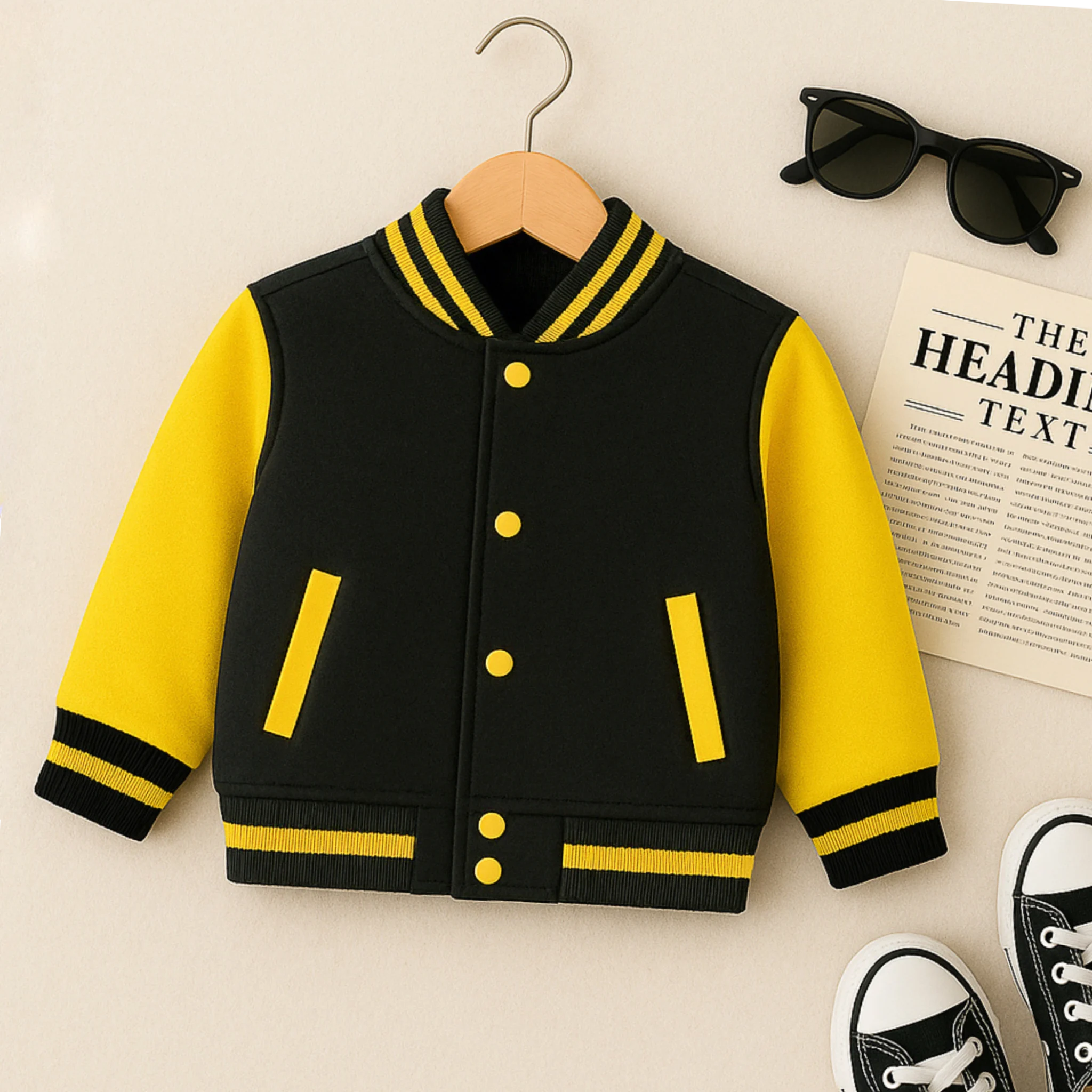 Introducing the Blaze Strike – Black & Yellow Varsity Jacket for Kids, a perfect mix of sporty style, comfort, and durability. At Deal20one, we know kidswear needs to be both trendy and practical — and this varsity jacket is designed to deliver just that.