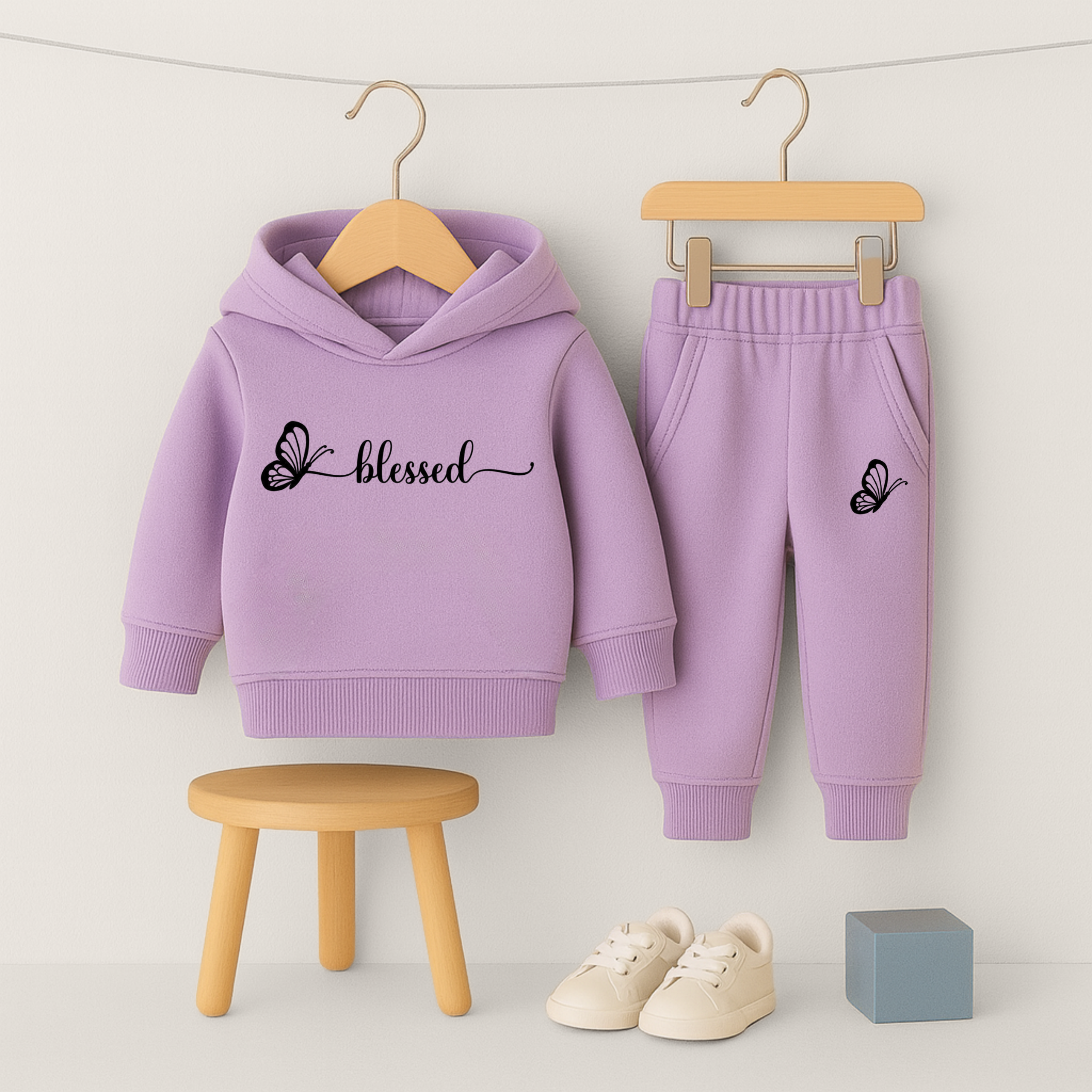 ✅ Blessed Printed Purple Hooded Tracksuit for Girls