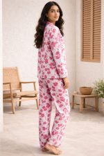 Experience timeless comfort with the Blush Nest Pink Floral Nightwear Set for Women, crafted from breathable jersey fabric for all-night ease. This two-piece set features a soft blush pink base adorned with delicate floral motifs, finished with chic piping details for a gentle and refined look.