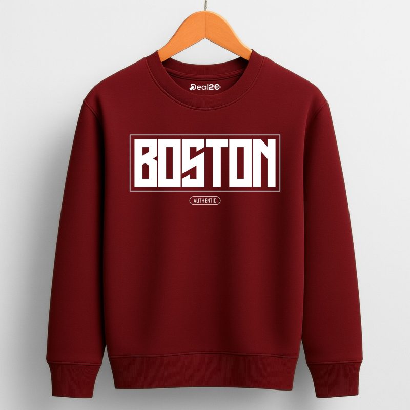 Give your kid’s wardrobe a timeless upgrade with our Boston Printed Maroon Sweatshirt for Tween Kids. Featuring a bold “Boston” varsity-style print on a rich maroon base, this sweatshirt delivers a cool, sporty look inspired by iconic American street fashion. Perfect for school, outings, or daily casual wear, it keeps kids comfortable while ensuring their style stands out.