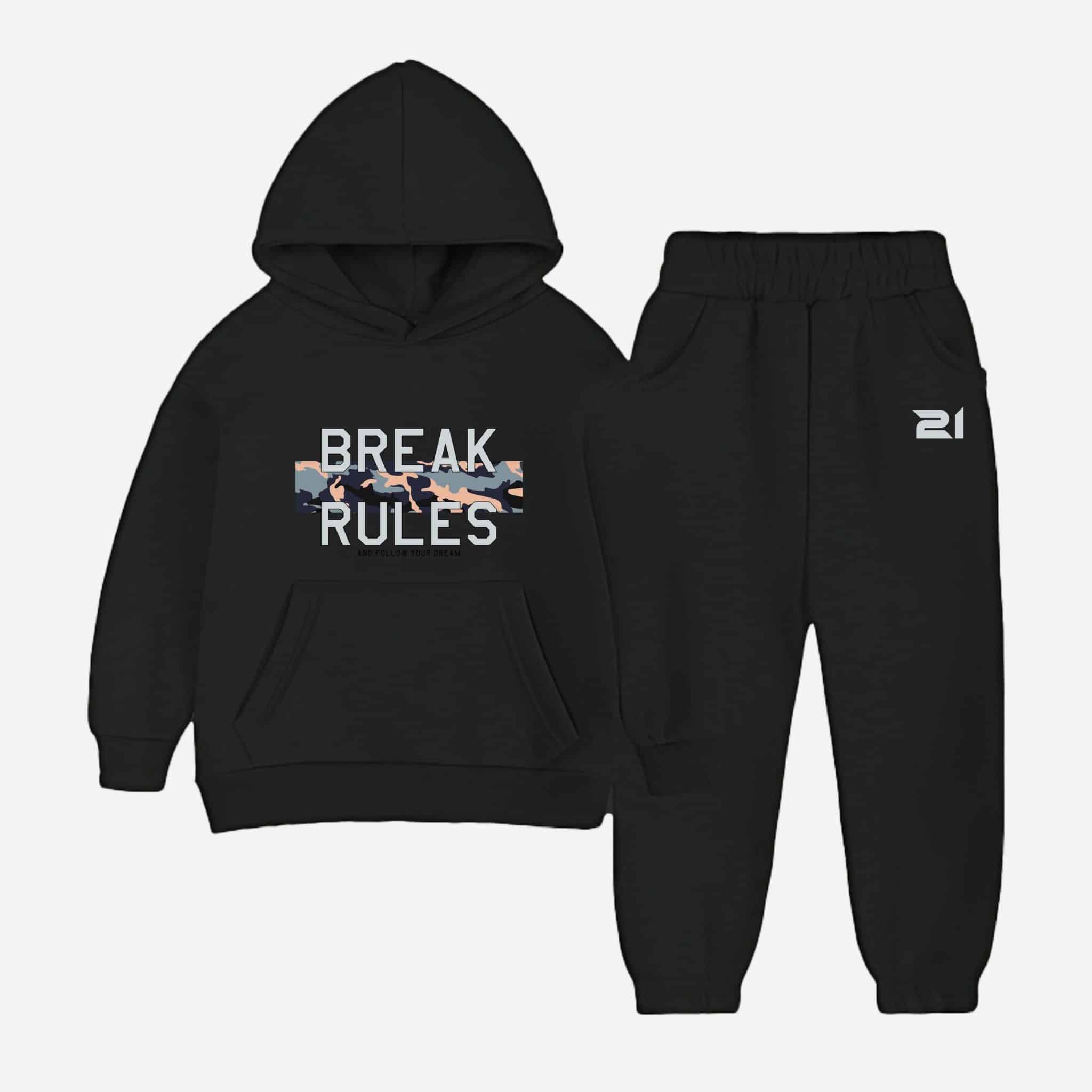 Break Rules Printed Hooded Tracksuit For Tween Kids