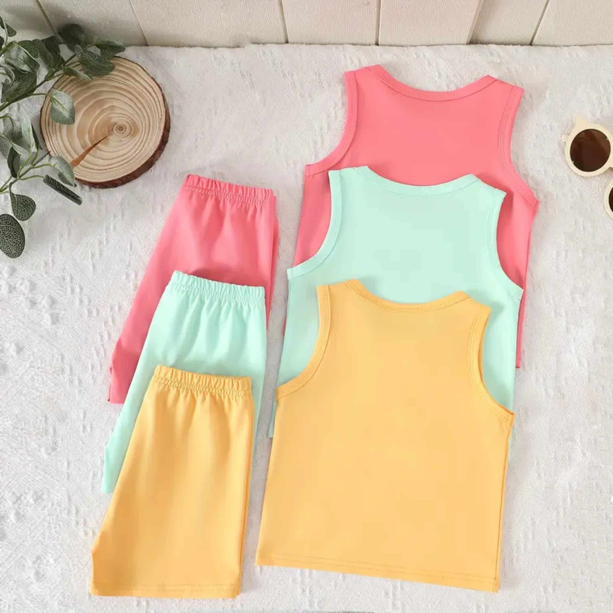 Bundle Of 3 Bright Colors Printed Sando Suit For Kids