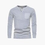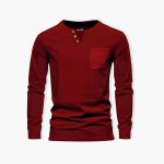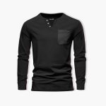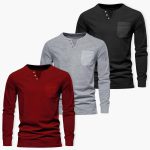 Bundle of 3 Henley Long-Sleeve T-Shirts with Stylish Three-Button Placket and Pocket for Men