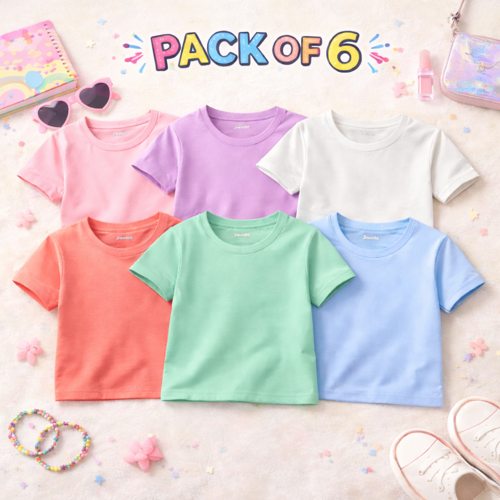 Bundle of 6 Minimal Style Colorful Summer T-Shirts For Girls