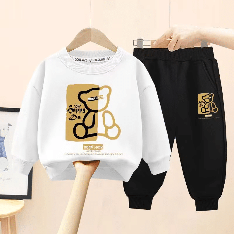Cartoon Bear Printed Sweatshirt Tracksuit For Kids