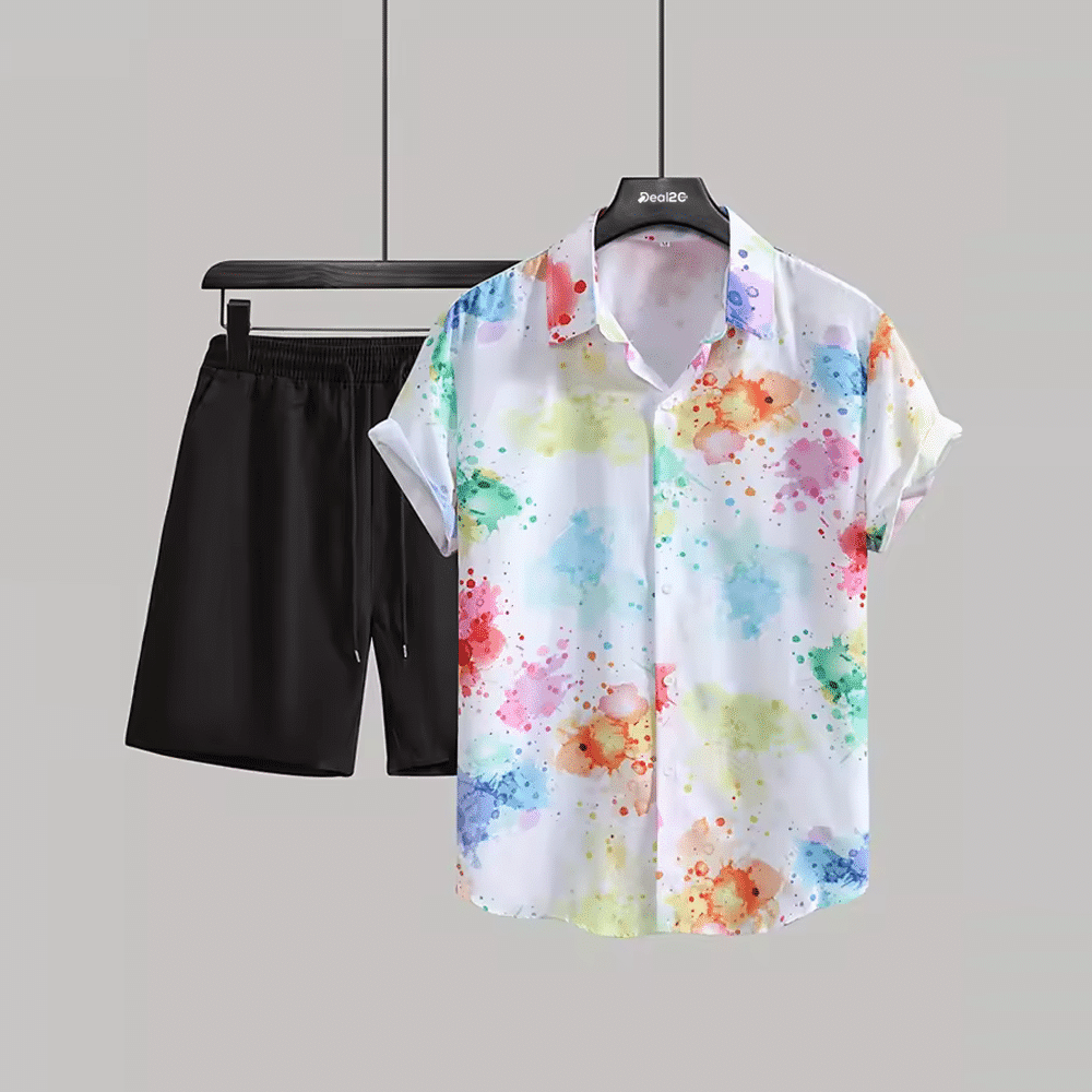 Color Burst Abstract Printed Summer Short Suit Set For Men
