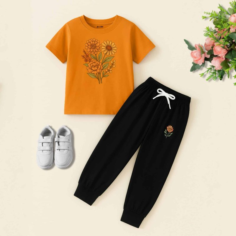 Cute Floral Graphic Printed Summer Trouser Suit For Girls