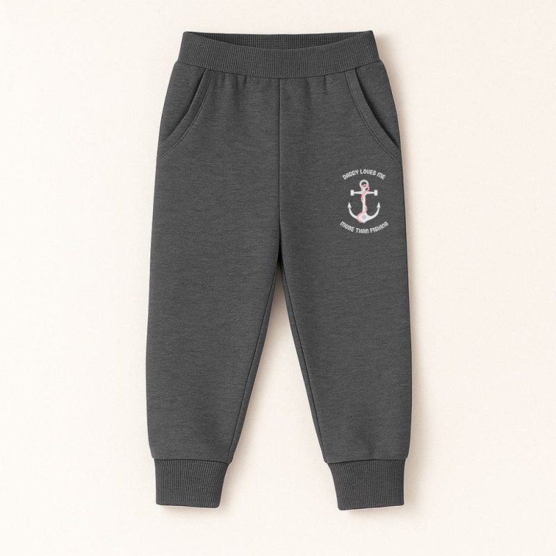 The charcoal grey color paired with a unique fishing-inspired DLM print brings a fresh and sporty look that’s ideal for kids who love outdoor themes and active lifestyles. Whether paired with hoodies, sweatshirts, or t-shirts, this sweatpant completes a cool and stylish outfit without compromising comfort.