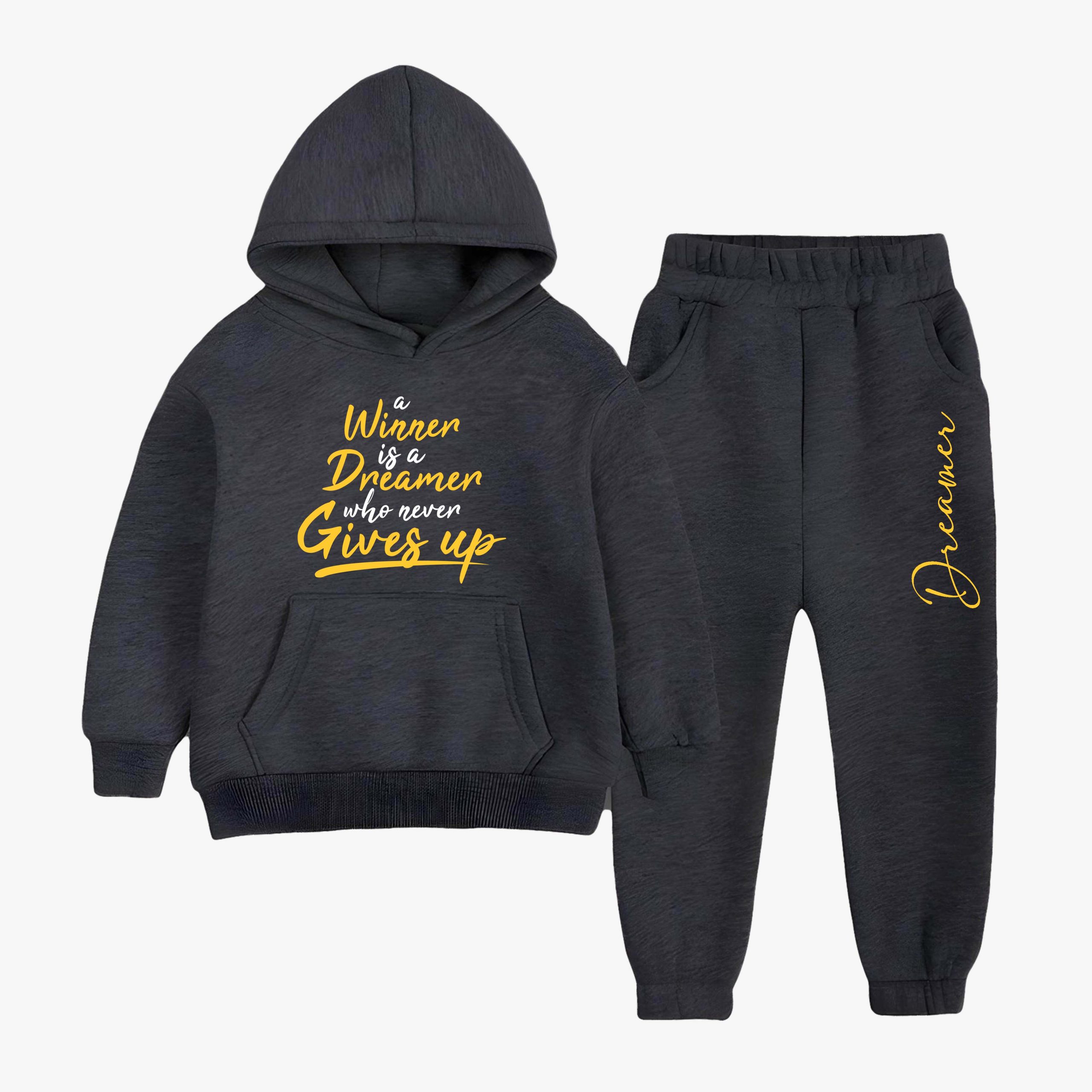 Dreamer Printed Hooded Tracksuit For Tween Kids – Charcoal