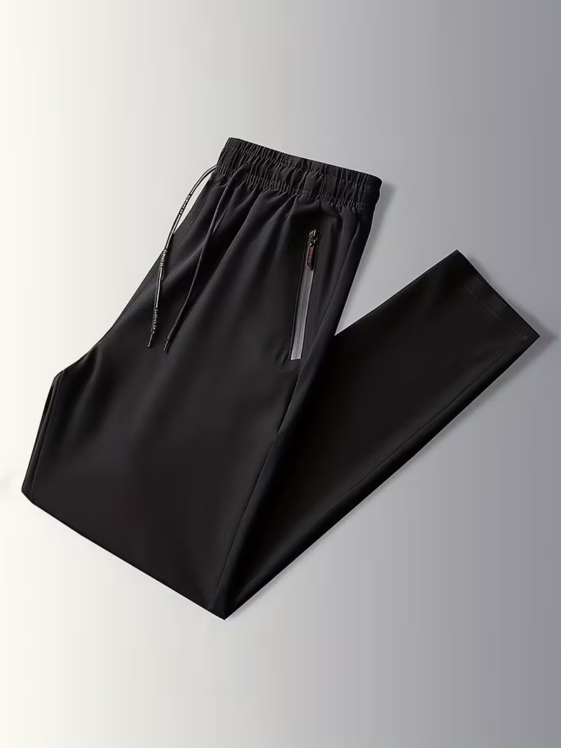 Made from premium dry-fit fabric, they ensure breathability, moisture-wicking comfort, and durability during workouts or casual wear. Featuring an elastic waistband with drawstring and zippered side pockets accented with subtle details, these trousers combine practicality with trend-forward style.