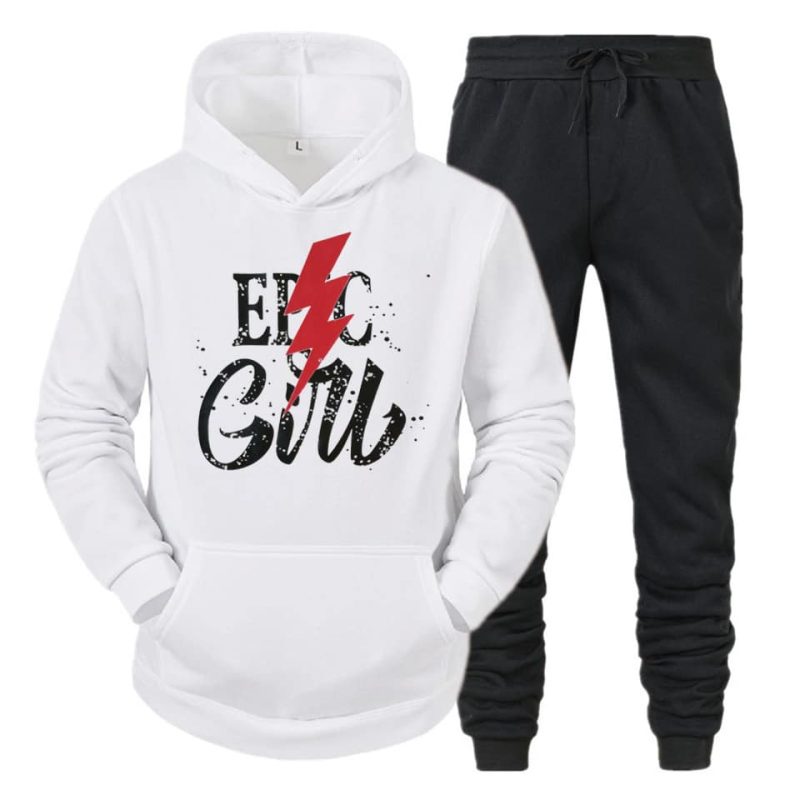 Modern Design: The sleek, modern silhouette fits perfectly, providing a flattering and trendy look. The hoodie comes with an adjustable drawstring for added style and function, while the matching track pants feature an elastic waistband for a comfortable, customizable fit.