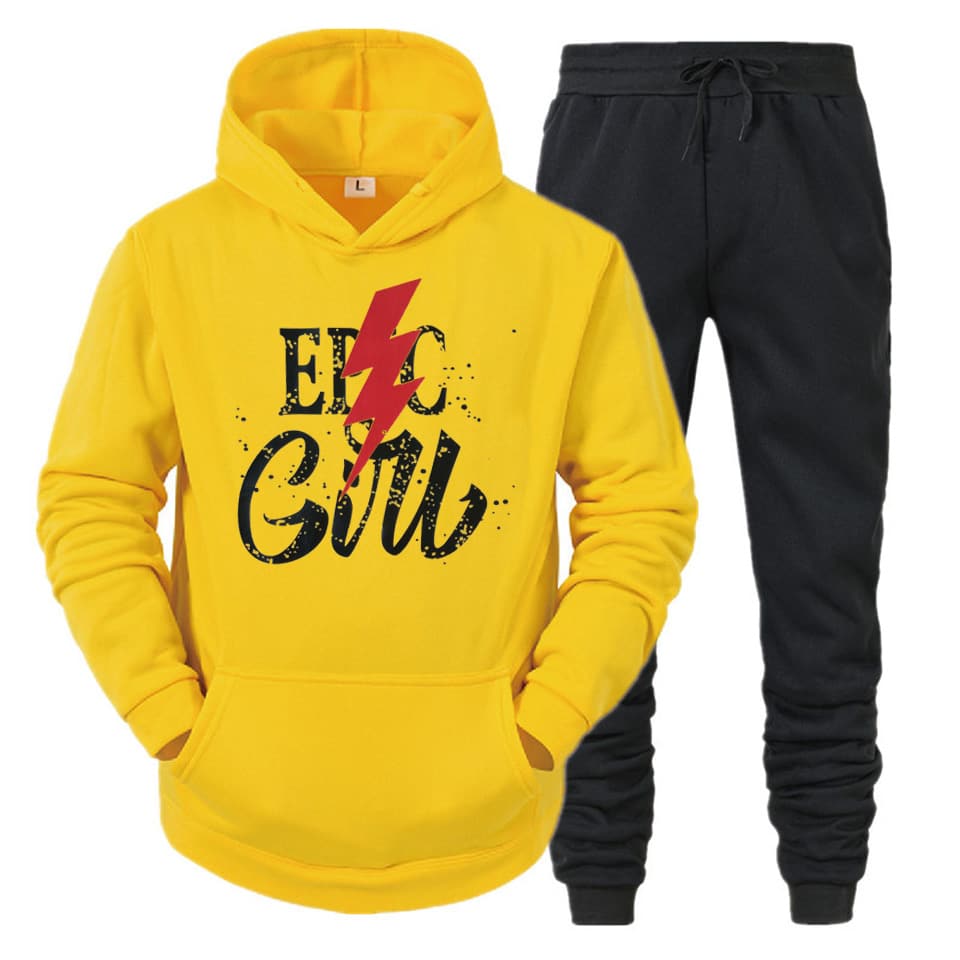 Modern Design: The sleek, modern silhouette fits perfectly, providing a flattering and trendy look. The hoodie comes with an adjustable drawstring for added style and function, while the matching track pants feature an elastic waistband for a comfortable, customizable fit.