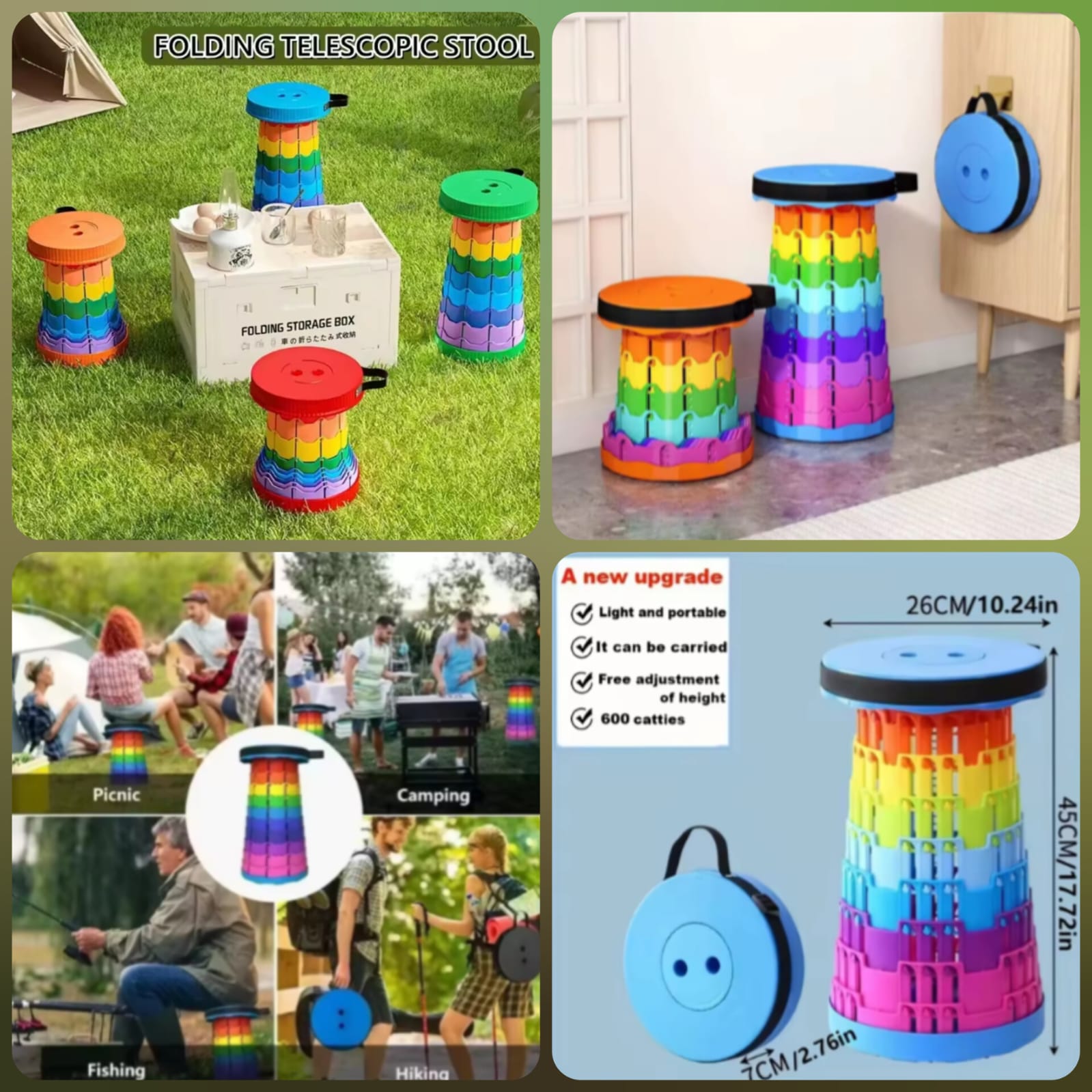 - Use: Perfect for camping, hiking, fishing, picnics, and outdoor seating