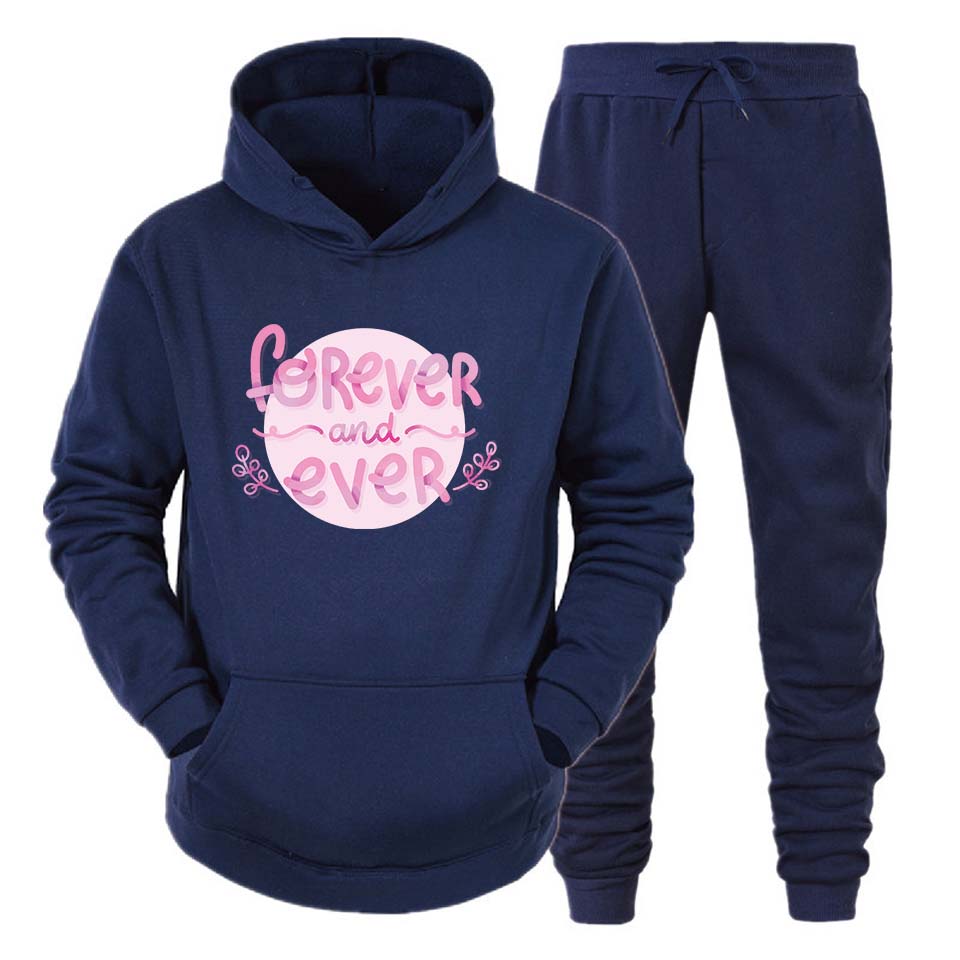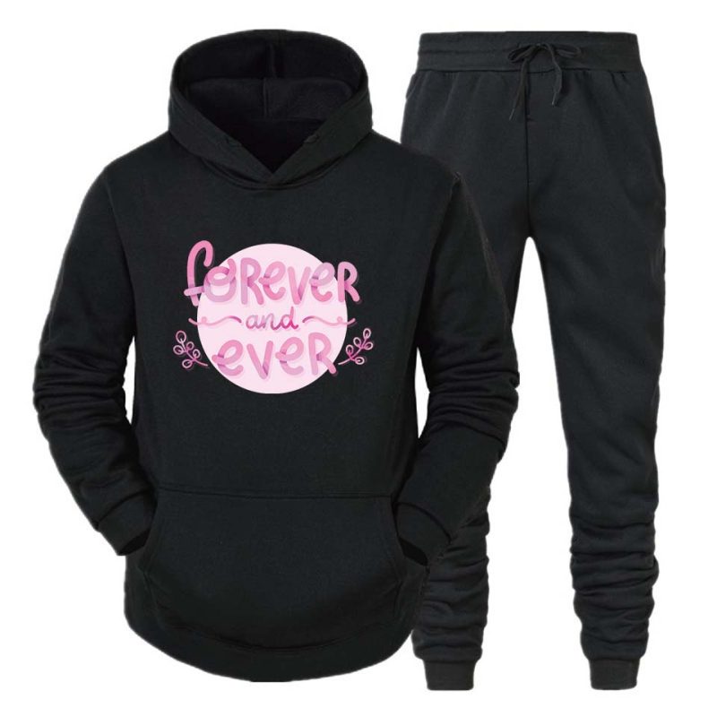 Modern Design: The sleek, modern silhouette fits perfectly, providing a flattering and trendy look. The hoodie comes with an adjustable drawstring for added style and function, while the matching track pants feature an elastic waistband for a comfortable, customizable fit.