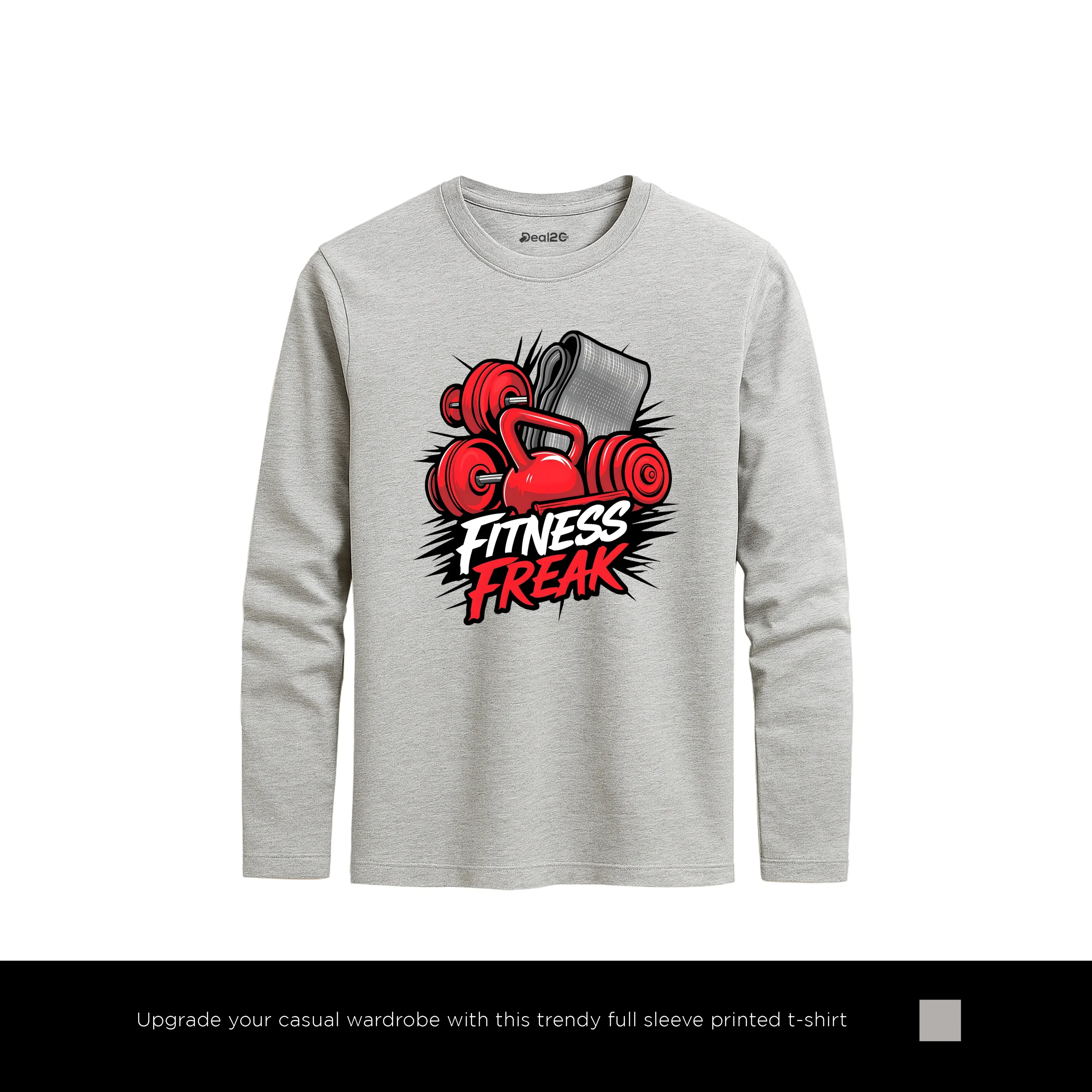 Freak Fit Printed Heather Grey Long Sleeve T-Shirt for Men