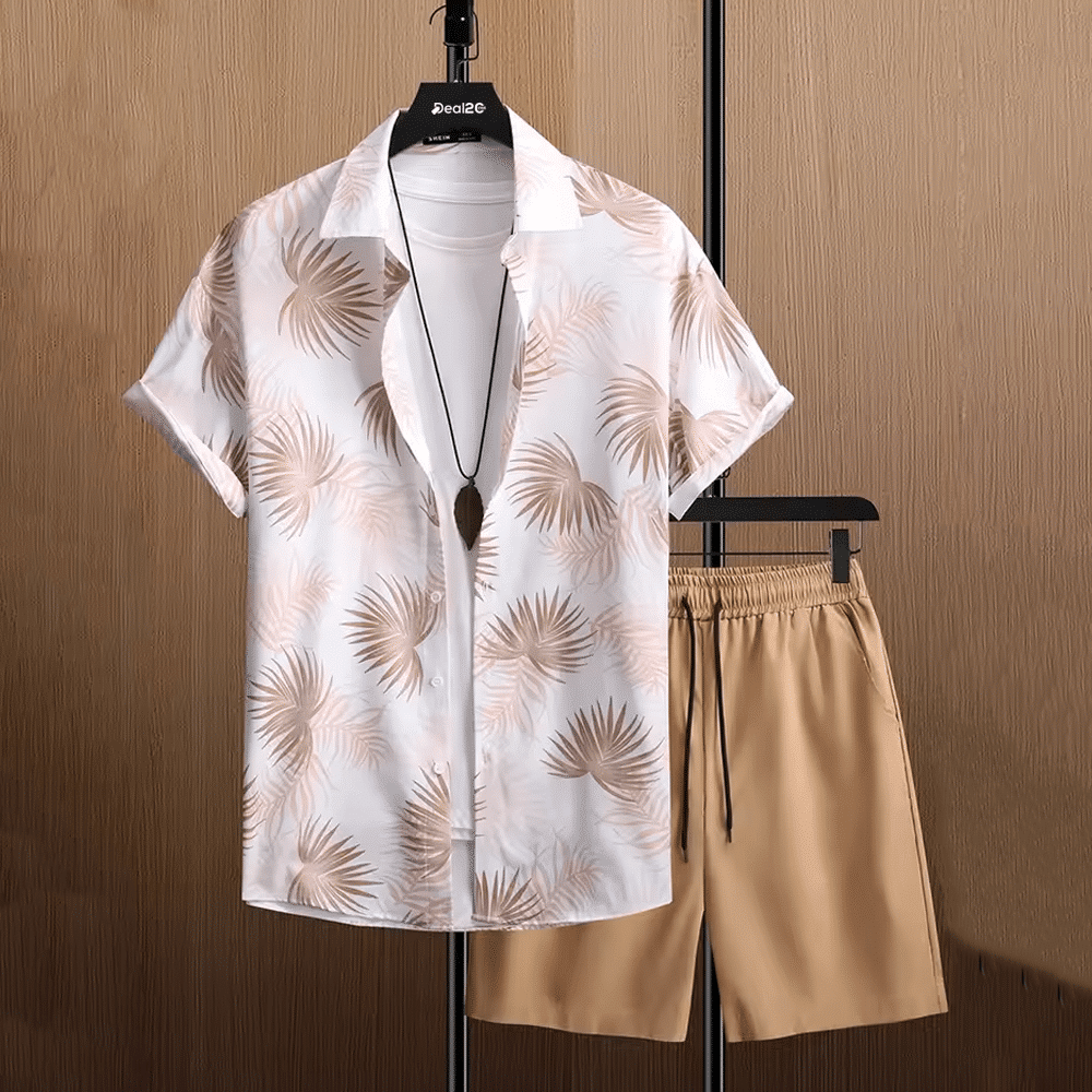 Golden Blush Palm Stylish Summer Short Suit For Men