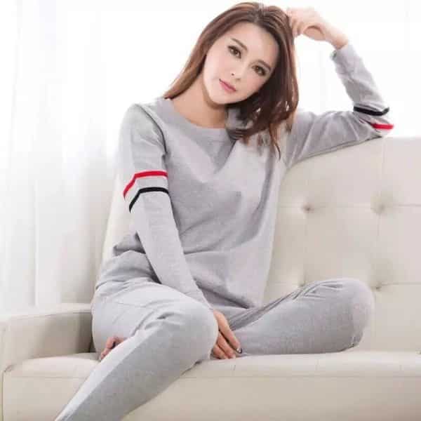 Get Grey Contrast Line Sleeves Night Suit in just Rs 999/- only