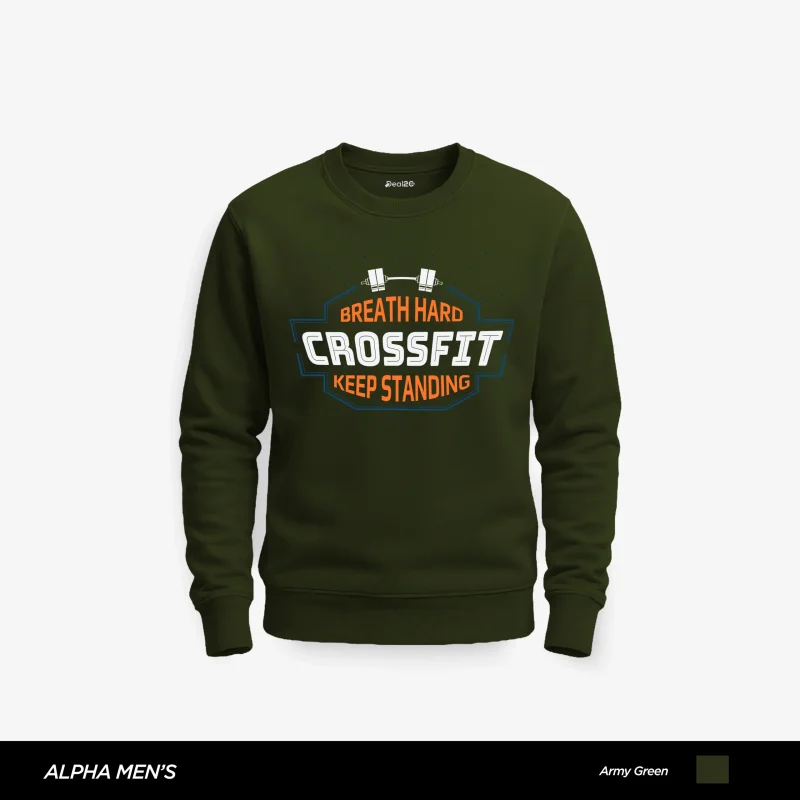 Introducing our Hard Crossfit Printed Army Green Sweatshirt for Men – the perfect blend of modern street style, comfort, and warmth. We understand the importance of quality outerwear, and our sweatshirt is designed to exceed your expectations.