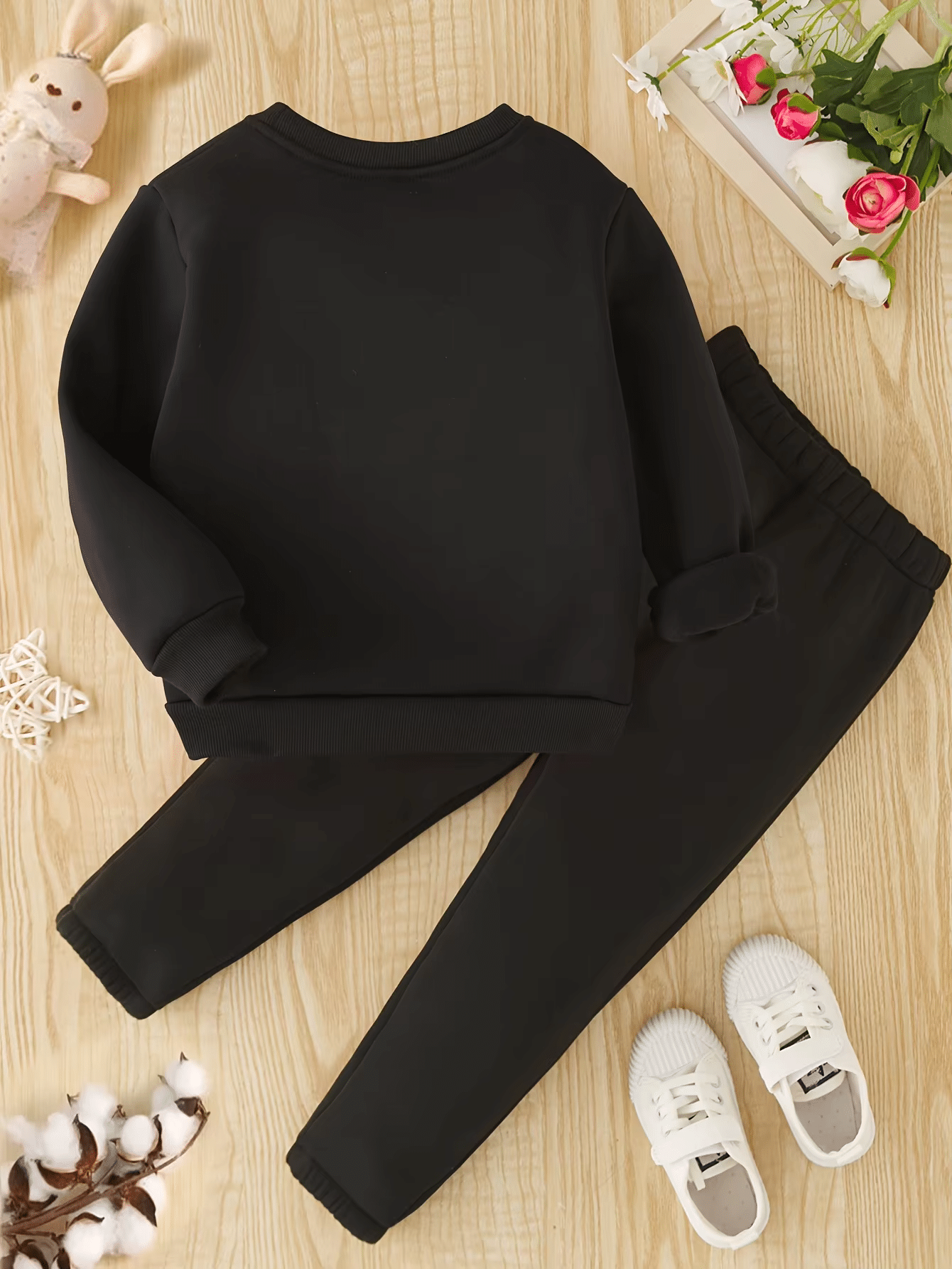 Heart Graphic Print Long Sleeve Sweatshirt Top and Pants Set For Girls