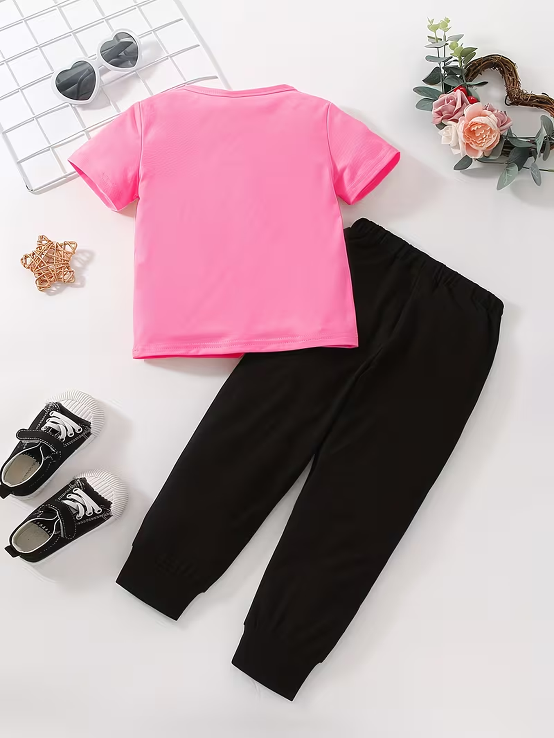 Be the first to review “Heart Graphic Printed Pink Summer Trouser Suit For Girls”