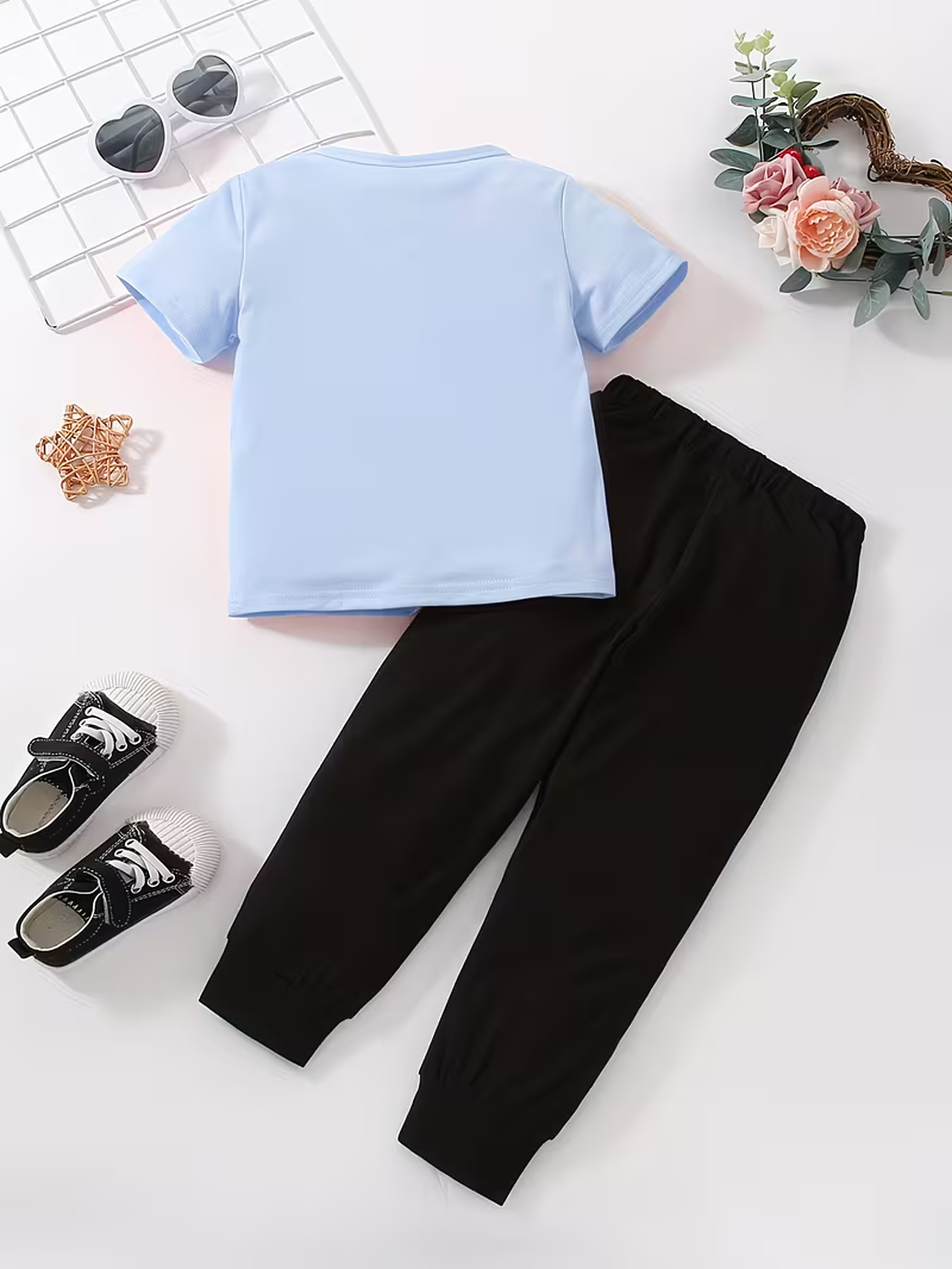 Heart Graphic Printed Sky Blue Summer Trouser Suit For Girls