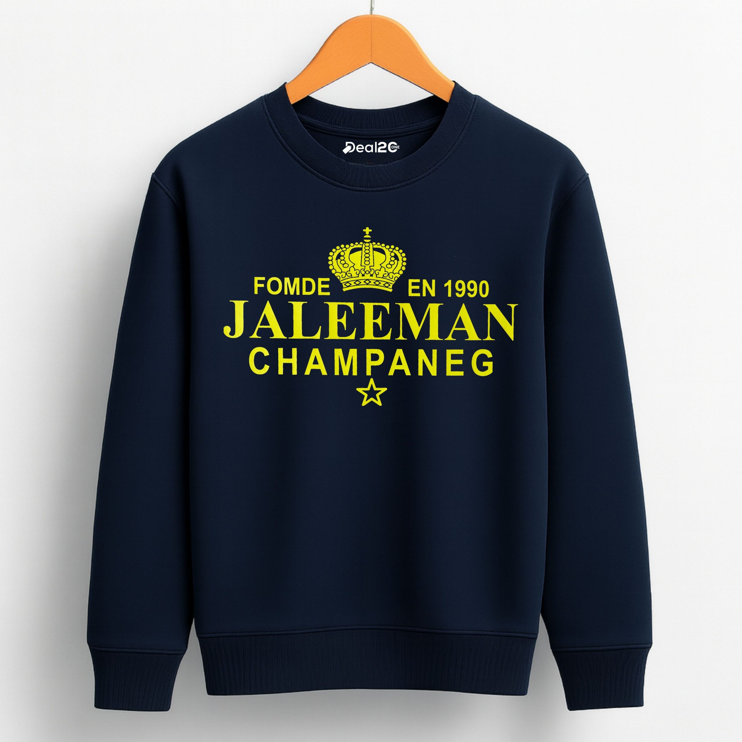 Refresh your kid’s winter outfits with our Jaleeman Printed Navy Blue Sweatshirt for Tween Kids. Featuring a striking “Jaleeman” print on a deep navy blue base, this sweatshirt delivers a strong and stylish look inspired by regional street culture. Perfect for school, casual outings, or daily wear, it adds personality and confidence to every outfit.