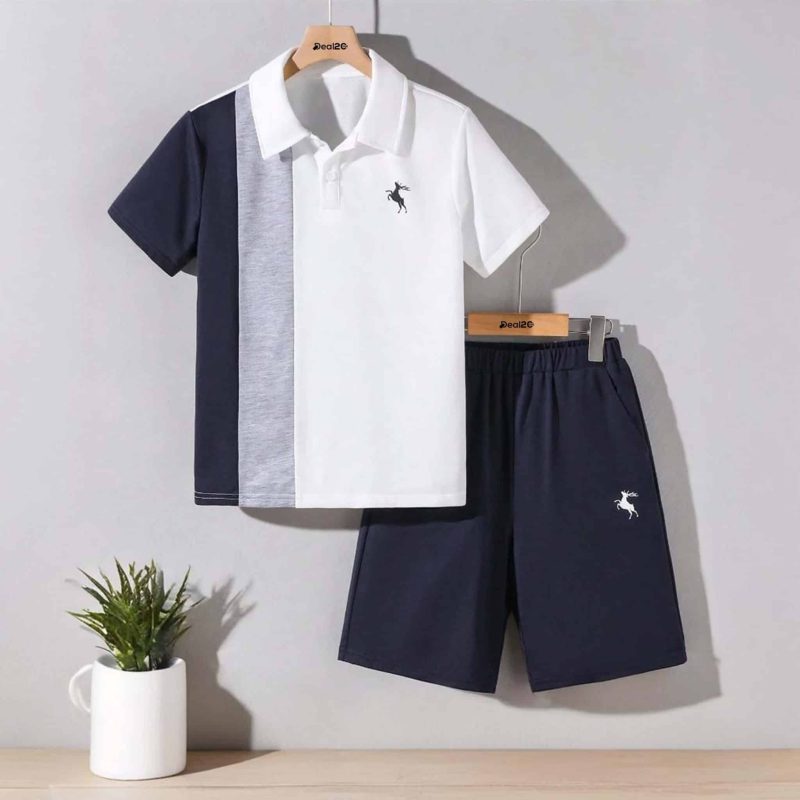 Kids Casual Navy and White Contrast Color Blocked Summer Short Suit