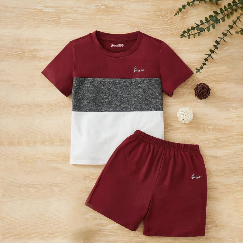 Kids Contrast Color Block Letter Print Summer Short Suit