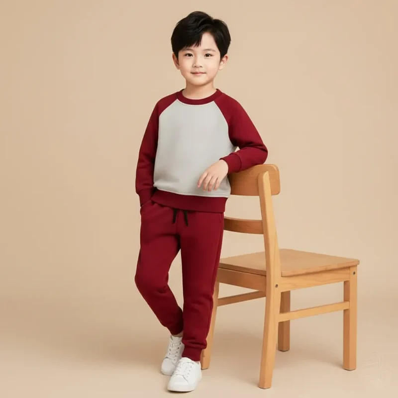 ✅ Kids Two-Tone Winter Tracksuit – Maroon & Grey