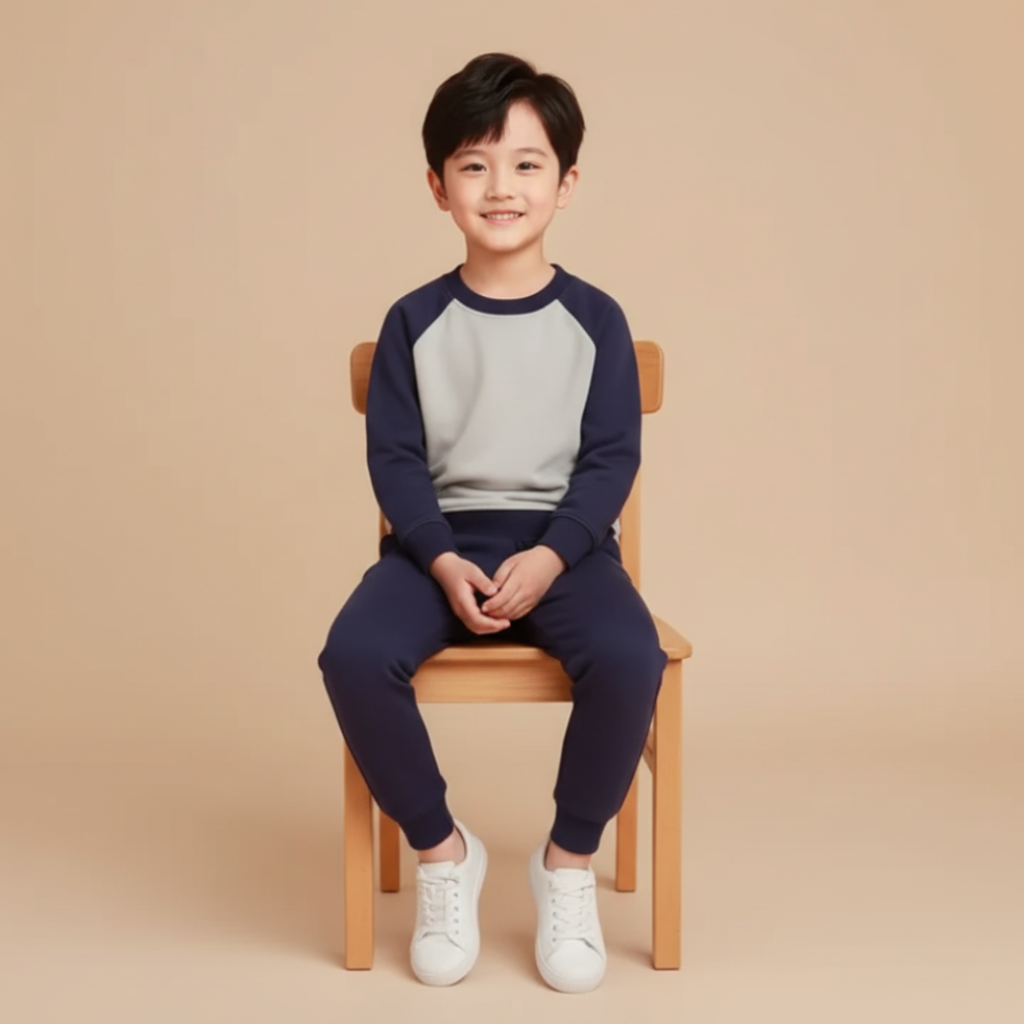 ✅ Kids Two-Tone Winter Tracksuit – Navy & Grey