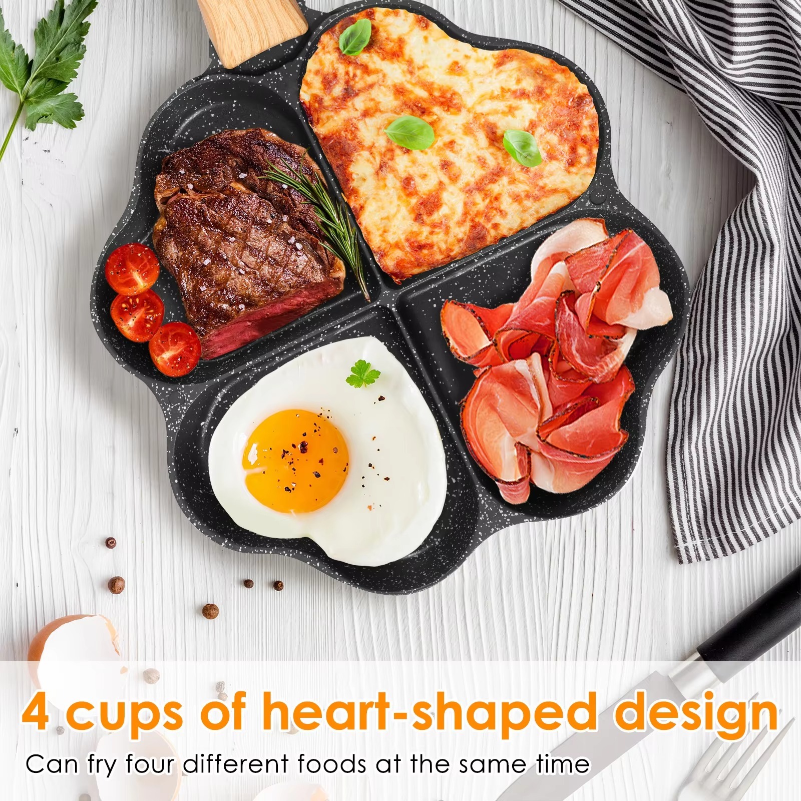- Design: 4-cup heart-shaped frying pan