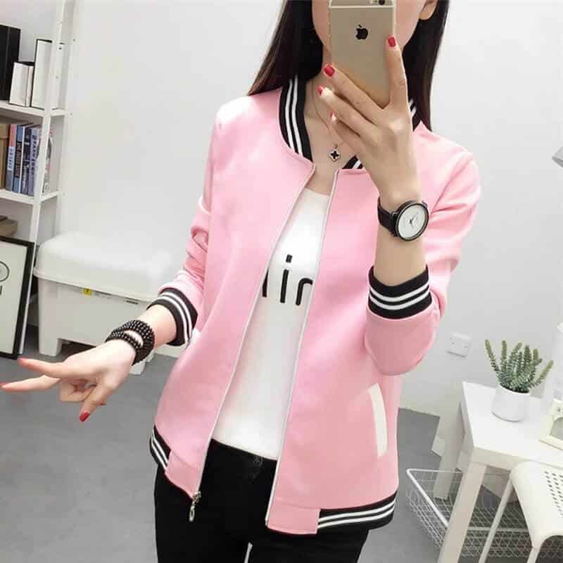 Get Ladies Pink Autumn Cropped Zipper Jacket in just Rs 1199/- only