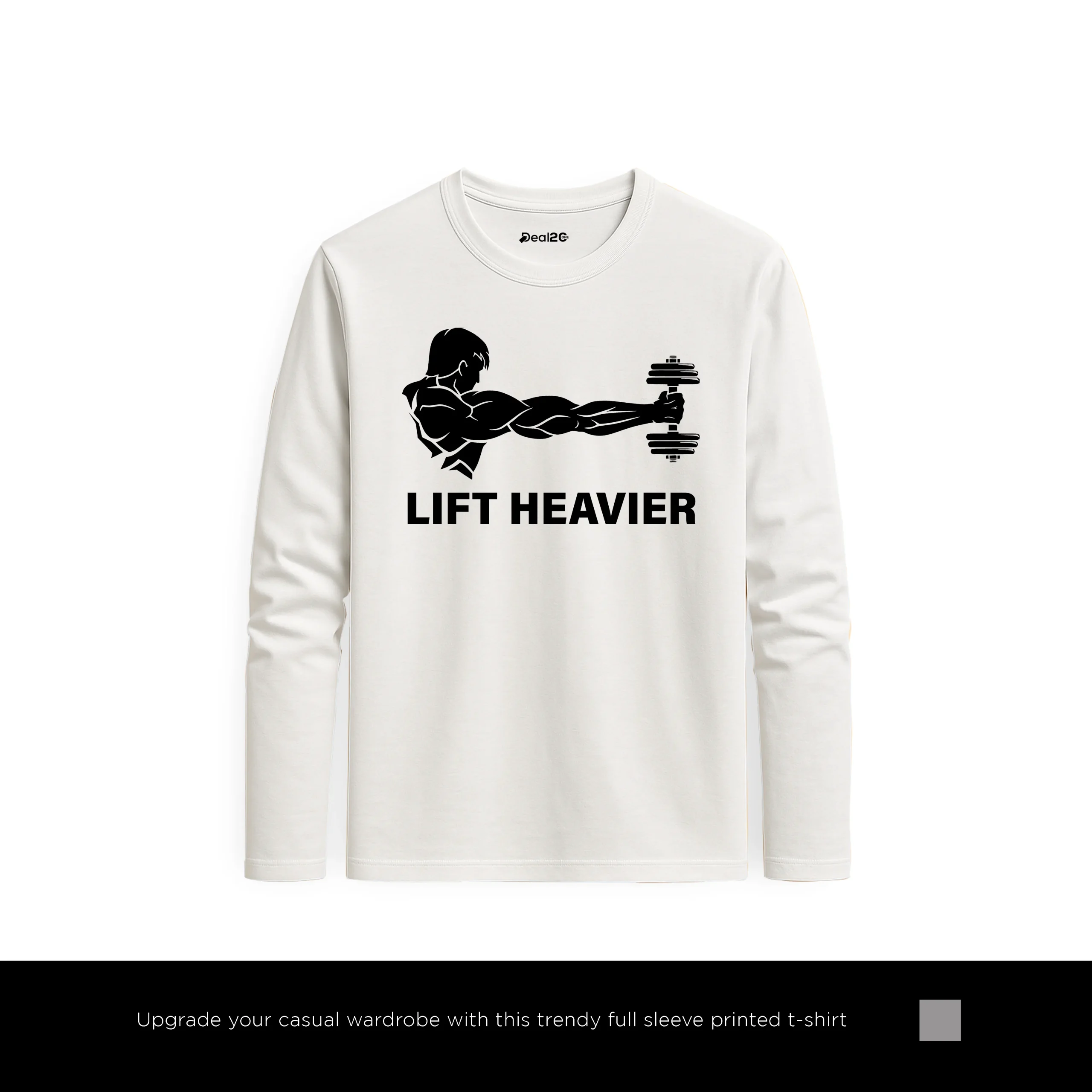 Lift Heavier Power Printed White Long Sleeve T-Shirt for Men
