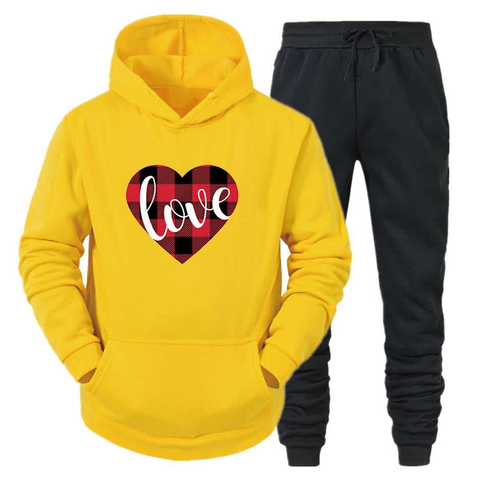 Modern Design: The sleek, modern silhouette fits perfectly, providing a flattering and trendy look. The hoodie comes with an adjustable drawstring for added style and function, while the matching track pants feature an elastic waistband for a comfortable, customizable fit.