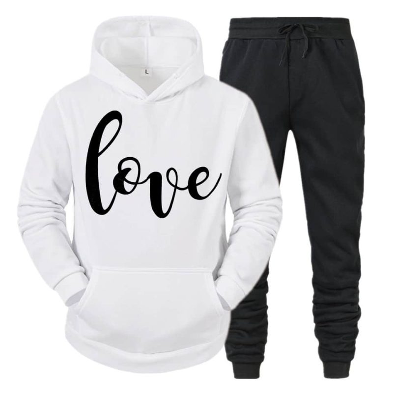 Modern Design: The sleek, modern silhouette fits perfectly, providing a flattering and trendy look. The hoodie comes with an adjustable drawstring for added style and function, while the matching track pants feature an elastic waistband for a comfortable, customizable fit.