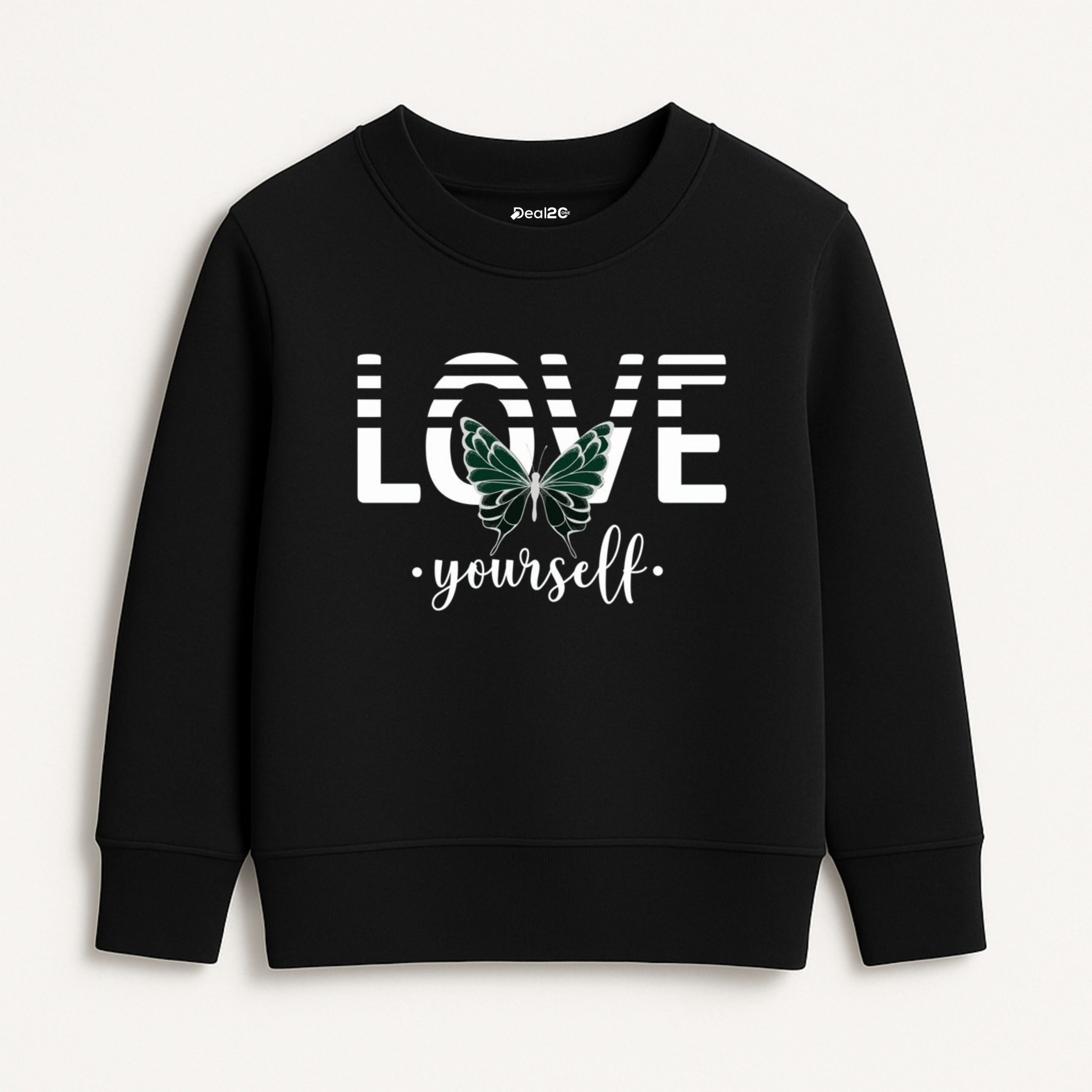 ✅ Love Yourself Printed Black Sweatshirt for Girls